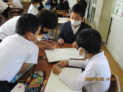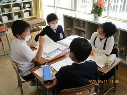 グループで考えを伝え合う場面では、答えがちがっていた仲間と、どのように考えたのか、またどのようにして求めると正しい答えを導くことができるのか、丁寧に確認し合っていました。仲間がいるからこそ、理解できたことに喜びを感じた児童もいました。