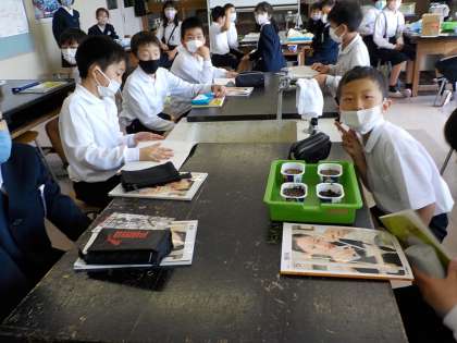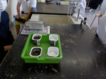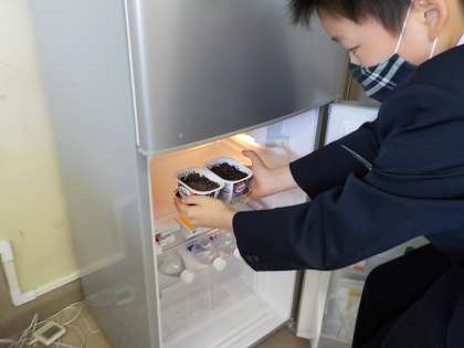 理科の時間、先日から予想してきた「種子が発芽するために必要なもの」を調べるための実験道具をセットしました。自分が調べたい条件でグループを決め、2セットずつ作りました。5年生の予想は、「水」「空気」「日光」「肥料」「土」「適度な温度」という6つが候補に挙げられていて、賛否が分かれているものもあります。これからお世話と観察を続け、発芽の秘密にせまります。