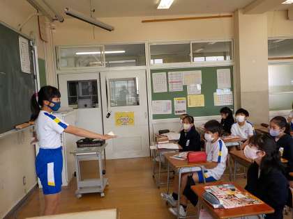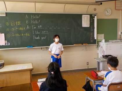 外国語の時間、自分の名前とスペルを言い、続けて好きな物について紹介しました。全員がしっかりと紹介することが出来ました。中にはジェスチャーをつけることができた子もいました。