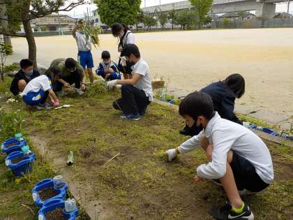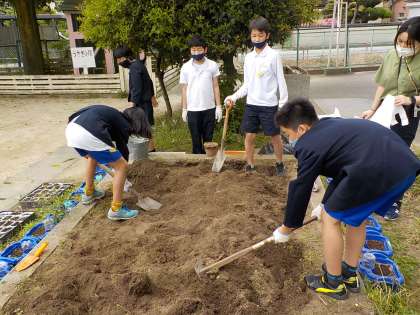 今日の委員会の時間、飼育栽培委員会では、花が終わったチューリップを処理し、花壇を整備しました。今月末には、花の苗が届く予定です。今年も花いっぱいにしたいねと、委員の子供たちは、心を込めて作業に取り組んでいました。