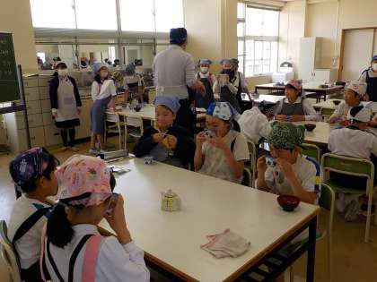 茶葉はほうじ茶でした。先生が、「味と香りを楽しみましょう」とおっしゃったので、いただきますをした後、においをかいでいる姿が印象的でした。「いいかおり」「香ばしい」という感想も聞かれましたが、一口飲んで「苦い」と、顔をしかめる子もいました。