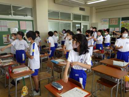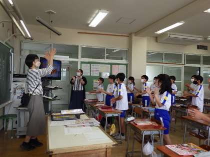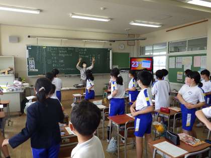 今日の外国語では、先週の「月」の読み方に続いて、「日」の読み方を学びました。1st、2nd、3rd・・・と、31thまでの言い方について知り、音楽に合わせ、体を動かしながら練習しました。ALTのルエラ先生の発音を聞きながら、熱心に練習していました。