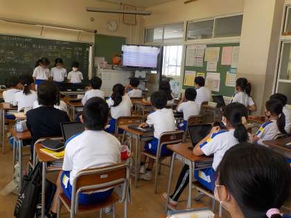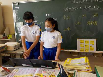 社会科の時間、それぞれの課題について調べ、まとめたことを発表しました。今日は、山脈や火山がテーマでした。同じテーマでも、課題はいろいろで、スライドを使った発表資料も上手に作れるようになってきました。聞く方も真剣に聞いていました。