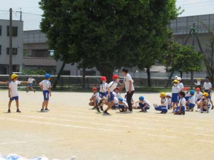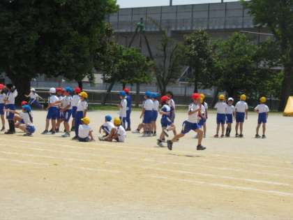 4時間目の体育では、3・4年生で中学年リレーと50m走の入場・退場の練習をしました。