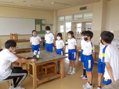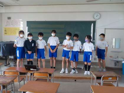 5年生は、明日の運動会、色団ごとに分かれて、ある準備を進めています。