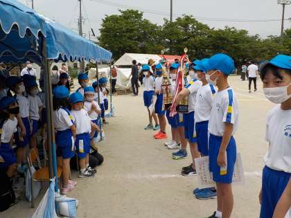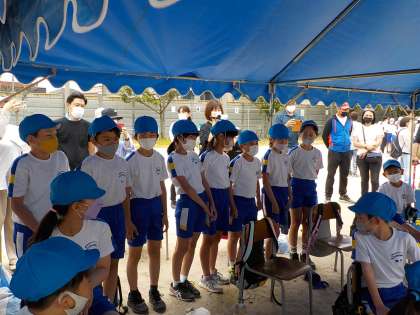 運動会の締めくくりは、解団式です。6年生から、下級生へのメッセージが述べられ、その後、担当の先生からのお話があって、これで解団式終了というところで、5年生からの「ちょっとまった!」今日までの6年生のがんばりへの感謝と賞賛の拍手を送ります。