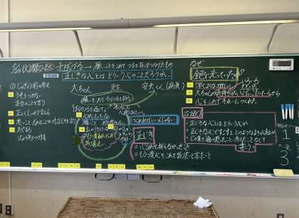 道徳科では「千ばづる」という教材をもとに「正直な心とはどんな心か」「正直な心で過ごすことのよさ」について話し合いました。