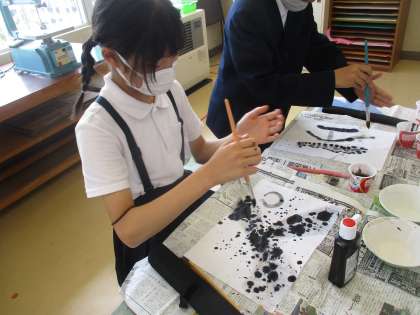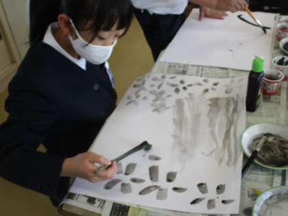 図画工作科では、墨と水を使った表現活動に取り組んでいます。