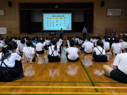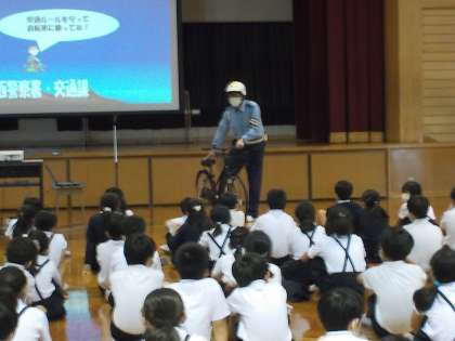 交通安全教室が開催され、自転車の安全な乗り方について、富山西警察署の方や、地域の交通安全指導員さんから、お話を聞きました。自分の自転車の乗り方や、点検の仕方について分かっているつもりでも、改めて話を聞くことは意義のあることだったようです。子供たちは、各家庭で、再度、話し合い、約束を決めてくることになっています。お子さんと安全な自転車の乗り方について、話し合ってくださいますよう、お願いします。