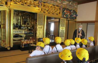 今日は石坂方面へ町たんけんに行きました。知っている場所でも、よく見るといろいろな発見があったり、お寺では中を見せていただき、話を聞いたりすることができましたね。