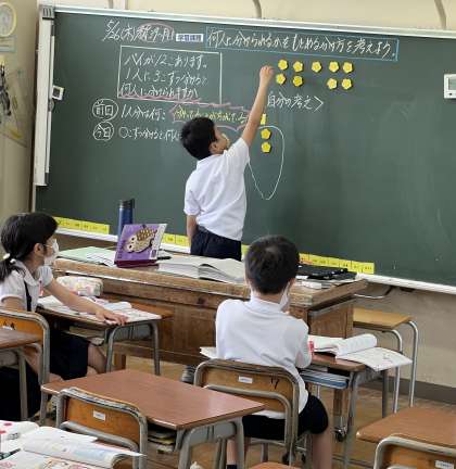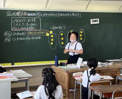算数科の学習では、決まった数を何人に分けることができるのかについて考えました。