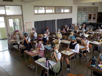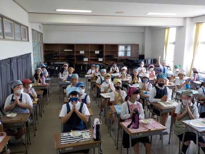 食後の5年生です。調理実習の感想はどうだったかな。刃物と火を使う実習でしたが、今回、うまくいったところ、失敗したところなど、いろいろあると思います。ぜひ、次に生かしてほしいと思いますし、ぜひ、家でも、調理にチャレンジしてほしいと思います。