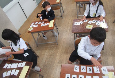 算数では、すうかあどやぶろっく等を使って、「いくつといくつ」の復習を繰り返しています。少しずつですが、覚えてきている子供もいるようです。