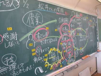 道徳科では、一日も休まずに交通指導員としての役割を果たしている松井さんについて話し合いました。