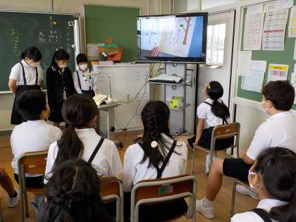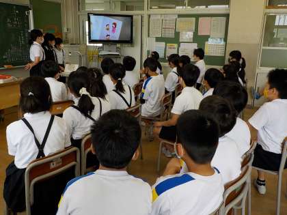 今日は、読み聞かせ係による読み聞かせ会が開かれました。3人で役割を分担し、本は書画カメラで投影しました。5年生は、忙しい中、係活動もがんばっています。