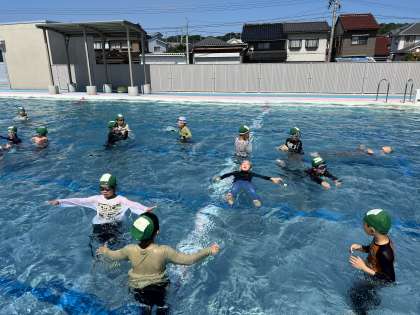 今日のプール学習では、万が一、水に落ちたときのために、着衣泳に取り組みました。