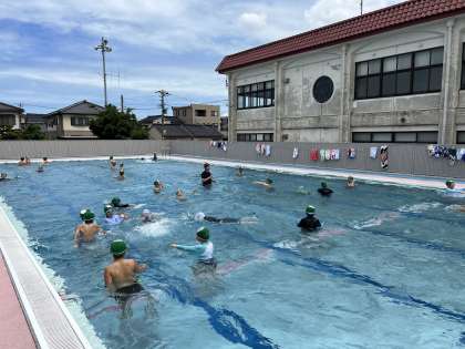 昨日までの天気予報では、今日は雨が降りそうでしたが、子供たちの願いが叶って天気はもち、プール学習を行うことができました。