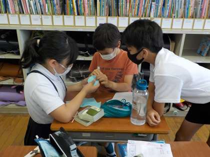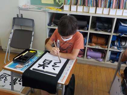今日は、リコーダー演奏、書道、家庭科の裁縫にチャレンジしました。日本の5年生の学習として、体験が多い日でした。休み時間には、皿回しにもチャレンジしました。