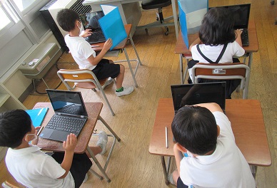 夏休みの宿題でもある、クラウドドリルに取り組んでいます。クロムブックの使い方にも少しずつ慣れてきた子供たちです。