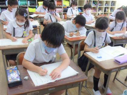 国語科では、お話を読んで思ったことや心に残ったことを丁寧にワークシートに書いていました。算数科では、三角形や四角形の特徴について調べたり、まとめたりしています。久しぶりに5日間登校した1週間でしたが、みんな一生懸命に頑張っていました。
