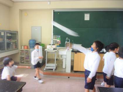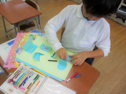 生活科では、うごくおもちゃの学習をしています。とても楽しみにしていた学習なので子どもたちはとても楽しそうでした。図画工作科では、カッターを使って作品づくりをしています。