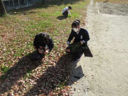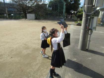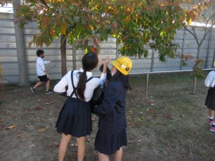 今回は、グラウンドにある木々の葉の色づきなどを観察しました。