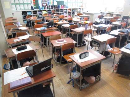 素早く机の下に身を隠し、素早く並び、落ち着いて避難するなど、下学年のお手本となるような素晴らしい姿が見られました。