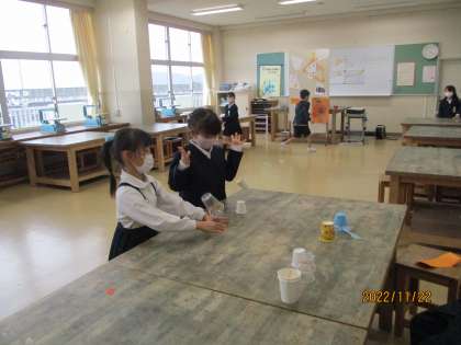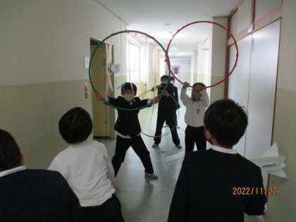 生活科の学習では、一人一人おもちゃを作っています。今日はみんなで遊ぶ日だったので、朝からとてもわくわくです。