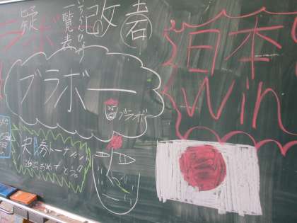 朝、教室に入ると黒板には、サッカー日本代表の勝利を祝うメッセージが書いてありました。朝早く起きて観ていた子供も結構いたようです。今日は、少しねむそうな子供たちでしたが、勉強やダンスをがんばりました。ブラボー!