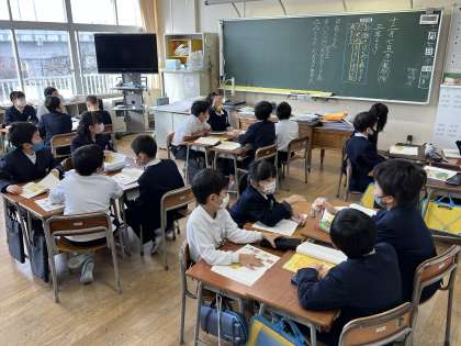 今日は、みんなで音読リレーをした後、お話のはじめと終わりで、だれがどのように変わったかについて考え、グループで話し合いました。