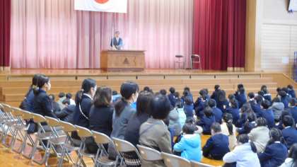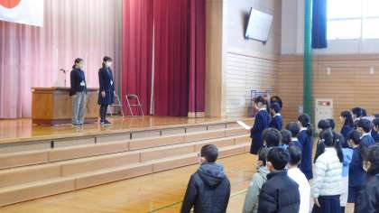 本日、お二人の先生をお迎えした後、3学期の始業式を行い、校長先生からは、「みんなで支え合い、助け合っていきましょう」「感謝の気持ちをもって生活していきましょう」と話がありました。