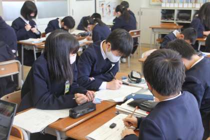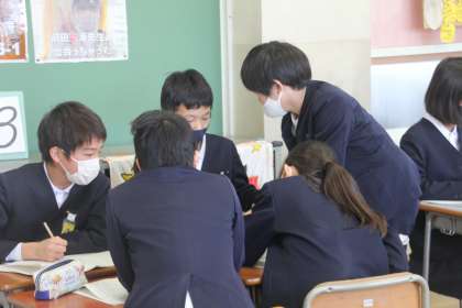 仲間と教え合う姿がすてきです。