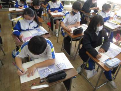 2時間目の道徳では、「百羽のつね」というお話を読み、「美しいもの」について考えました。