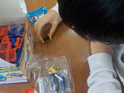 電磁石の学習で、コイルに電流を流すと磁石の力をもつようになるのかという課題で、実験をしました。3年生で学んだこと、4年生で学んだことを生かして、「磁石になっているとしたら、〇〇になるはず」と予想しながら、実験を進めました。次回は、コイルの巻き数によって、磁力は変わるのかどうかを実験して確かめる予定です。