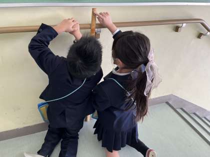 算数科では「m」を使った学習をしています。今日は1mだと思うものを予想し、実際に測る活動を行いました。いろいろなものの長さを予想して測り、1mの量感を育みました。