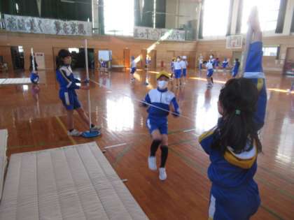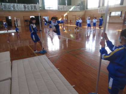 この学習は昨日から始まりましたが、リズミカルな助走や跳び方に慣れてきて、昨日より記録が高くなった人が多くいました。