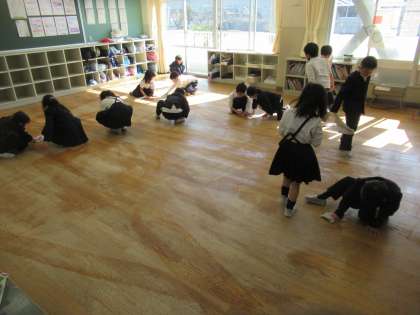教室のワックスがけのために、掃除を頑張った1年生です。いつもよりも時間をかけて、隅々まできれいにしました。