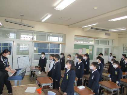 今日の朝活動では、修了式でのびのび堂々と歌えるように、校歌の練習を行いました。