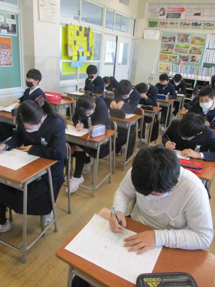 今日は期末テストに取り組んだり、5年生さんが企画したスペシャルなかよしタイムに参加したりしました。