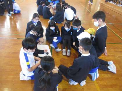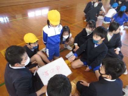 4年生は、「イントロクイズ」で6年生と協力しながら、楽しく活動しました。