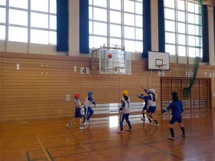 1枚目の写真は、体育最終日、3on3のゲームの様子です。