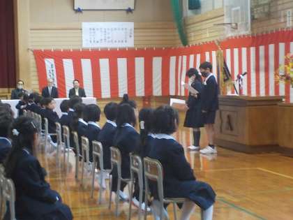 今日は入学式、6年生は、朝から清掃や1年生のお世話と、活躍していました。気持ちのよいあいさつも素敵だったと、他の先生方や職員の方からたくさん褒められました。NくんとMさんのあいさつも堂々として立派でした。