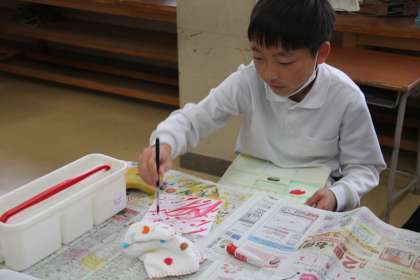 図画工作科では、「心のもよう」を想像しながら、作品づくりに取り組みました。