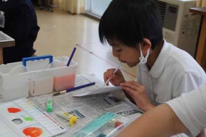 明るい気持ち、熱い気持ち、悲しい気持ち・・・など、子供たちは、思い思いに自分の気持ちを水彩で表現しました。