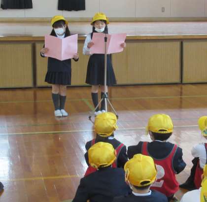 今日は、1・2年生で交通安全教室に参加しました。