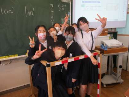 算数科では、1立方メートルの模型を組み立てて、実際の大きさを体感しました。