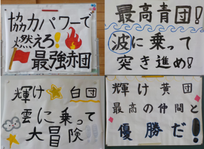 今日は、運動会に向けての結団式と第1回の応援練習が行われました。各団のめあてを伝え、応援の声出しや振り付けを教えるために、どのように進めればよいか、団ごとに準備を進めてきました。実際にやってみると、うまくいったところもそうでないところもあり、担当の先生とふり返りを行い、次回の練習に生かそうとしています。