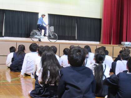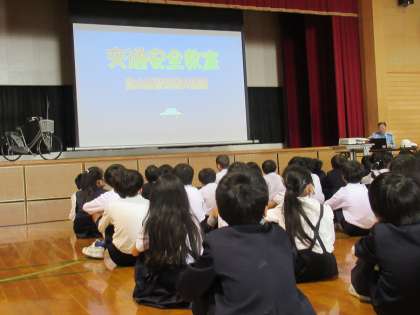 今日、交通安全教室があり、自転車の安全な乗り方や交通ルールについての話を聞きました。子供たちは、「ブレーキをかける順番があるのは初めて知った」「ヘルメットをつけた方が命を守れるということが分かった」などと振り返り、安全に自転車に乗りたいと話していました。