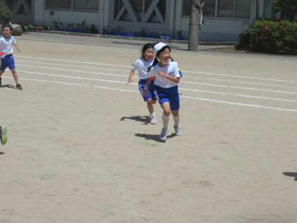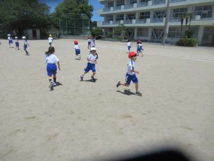 3時間目の体育では、スポーツテスト(今年度は各学年で実施)の50m走のタイム測定をした後、「ふえおに」と「氷おに」をしました。