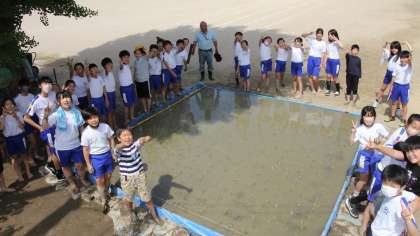子供たちは、一苗一苗、丁寧に、思いを込めながら植えていきました。
